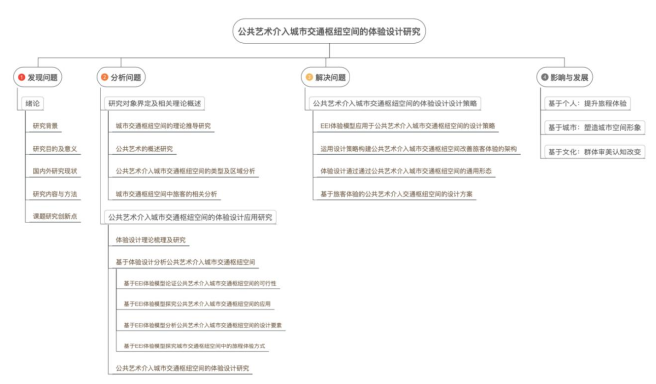 本课题从体验设计的角度出发,以城市交通枢纽空间为研究对象,探索公共艺术作为媒介介入空间来提升空间的体验品质,创造了大量流动人群的新的体验感知,丰富和补充了公共艺术在这一领域内的展示形态,加强了旅客在城市交通枢纽空间内的艺术体验。