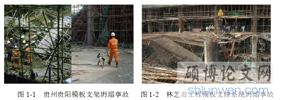 2010 年 3 月 14 日,贵州省贵阳市国际会展中心工程,施工人员在浇筑混凝土时,模板支撑系统发生坍塌,造成 9 名作业人员死亡,1 人重伤,19 人受伤,见图 1-1。