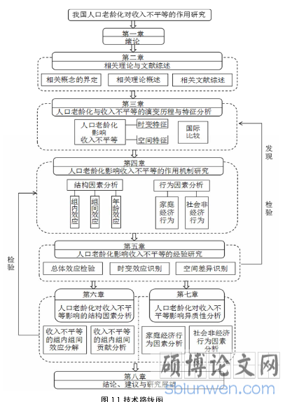 本文试图通过构建人口老龄化与收入不平等关系模型,探究我国人口老龄化是否在某种程度上会影响或作用于收入不平等,研究二者之间是否存在某种程度上的相关作用关系或者因果关系。本文主要是宏观视角、分组视角和微观视角对问题进行实证分析。在宏观视角下,本文主要选取我国人口老龄化相关指标和收入不平等相关指标,通过构建相应的实证研究模型进行检验,以期探究二者之间具有何种动态关联机制以及证明二者之间存在线性或非线性关系。更值得一提的是,本文充分考虑到老龄化问题与经济发展,收入分配结构在过去二十年来在我国的变化趋势,故而在研究中加入我国经济与人口结构的时变性研究。由于传统的线性计量模型并不能有效体现出变量之间的非线性关系,因此需要构建非线性的计量模型,进而进行必要的深入分析与实证检验。在分组视角下,本研究试图通过组内与组间效应分解收入不平等,以探究人口老龄化对我国收入分配的影响程度。在微观视角下,本文收集大量家庭数据,同时调查了大量了非经济现象,基于家庭数据分析影响老年家庭与青年家庭收入不平等的主要因素,在研究家庭经济行为,创新性地加入了社会非经济行为,准确客观的分析了人口老龄化对家庭不平等收入的影响,提高了研究模型的准确性与分析客观性;同时也考虑到家庭数据具有显著的异质性,本文通过采用可以降低数据异质性的倾向得分匹配模型,从而剥离出控制变量对研究的影响,以期得到更为准确的结论。
