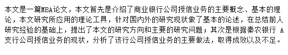 比较分析法。以比较优势的影响机理,针对 A 支行公司授信业务流程的优劣势,基于和挑战进行比较,依据比较优势的结果,形成定性分析的结果。