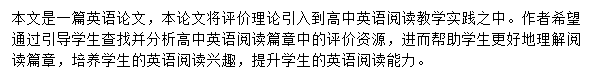 It is because there exist many problems in English reading teaching of senior highschools, how to make the classroom instructions more effectively to arouse students’reading interest, attitude and improve students’ reading competence has become aresearching focus. Consequently, the author of the present study also joins in this researchfield and attempts to explore a way of English reading teaching based on Appraisal Theoryand its application to English teaching of previous studies.