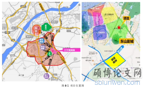 ZL 南京公司 XY 项目位于江苏省南京市江宁高新园鹏山路以南、知行路东侧,占地面积 33623m2。如图 6-1 所示,从发展之初的距离主城较近的岔路口板块、山水资源优越的将军山板块和百家湖板块、人口密集的东山镇板块,到目前规划提升高档楼盘聚集的九龙湖板块,人文气氛浓厚的科学园板块,项目周边开发趋于成熟,城市配套发展进入提速发展期。