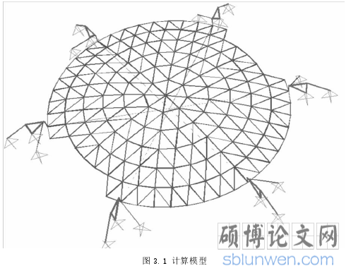 按照设计图纸,网壳结构材质全部为 Q345B 钢,选用 SAP2000 有限元分析程序进行结构计算。