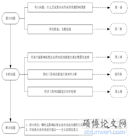 第 1 章:绪论。引出问题:描述选题的意义,指出影响家族企业传承的主要因素有哪些,并阐述可能的创新点。
