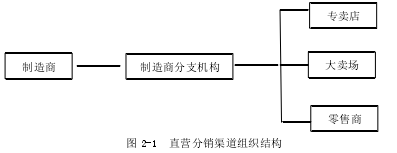 直营分销渠道模式是家电制造商去掉中间的分销环节,直接供货给零售商的模式。这种模式的通常做法是家电制造商在省级市场设立自己的分支机构,负责管理省级市场的零售商。直营分销渠道模式的组织结构如图 2-1 所示: