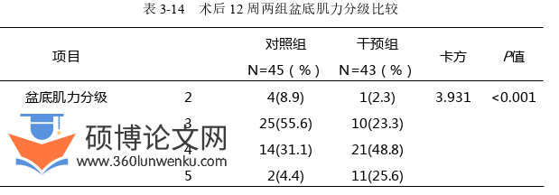 3.基于健康行为改变整合理论为基础的护理干预可以使宫颈癌根治术后患者盆底肌肌力增强。