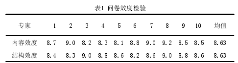 通过表1可以看出,通过10位专家对于问卷的效度评定,可以看出问卷的内容和结构设计较为合理,能够反映实际情况。