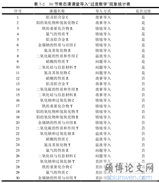 表 7-2 30 节常态课课堂导入“过度教学”现象统计表