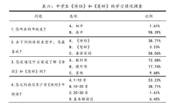 表六:中学生《诗经》和《楚辞》的学习情况调查