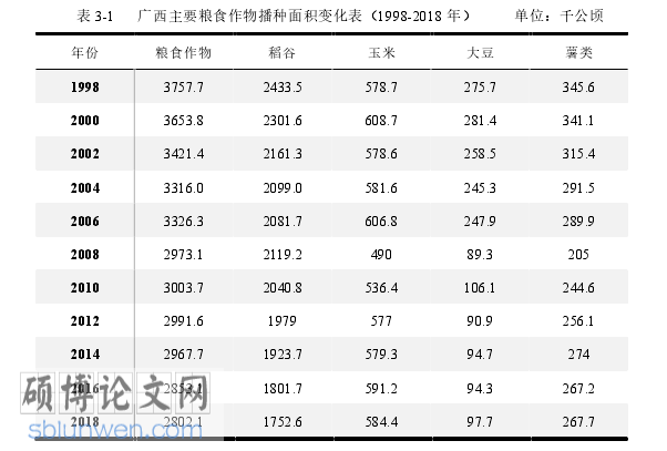 3.1.2 广西粮食作物播种面积缓慢下降................................... 20