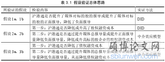 表 3.1 假设验证总体思路