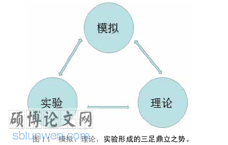 自 1949 年世界上第一台计算机诞生以来,计算机经历了从电子管、晶体管、集成电路到超大规模集成电路的时代。计算机模拟技术也取得了高速的发展,近年来被广泛应用于材料学、物理学、生命科学等领域。计算机模拟技术弥补了传统实验和理论的一些缺陷,并且与实验和理论形成了三足鼎立之势[12]。一方面,计算机模拟不仅能够对实验中无法观测的现象进行定性的描述,直观的获得微观、介观形貌,而且可以定量的计算材料的物理化学性质,由此为材料的设计提供可行的路线;另一方面,计算机模拟还可以对理论进行验证和补充,对理论提出的模型进行优化。计算机模拟存在安全性高、可行性强、效率高、无污染等优点,这些优点大大节约了人力、物力,缩短了材料的研发周期,对材料领域的发展有着极为重要的意义。伴随着近几十年来计算机硬件、软件和算法的飞速发展,计算机的计算能力显著提高,计算机模拟成为人类科学探索的第三类方式[13]。
