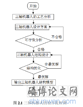 在三轴机器人的设计前,需要对它的工艺过程进行研究分析。根据三轴机器人所工作的场景特点,对它的工作要求等进行详细的分析,确定三轴机器人的工艺要求。根据三轴机器人的工作场合要求,需要对它的工作场景进行分析,并确定该设备的具体参数。根据三轴机器人的设计特点,它主要是在绕 Z 轴转动方向、上下移动方向和伸出轴等方向上运动。由于三轴机器人具有工作精度高、运动过程稳定、控制简单方便,而且价格低廉,所以在工业生产中具有广泛的应用价值。