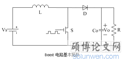 计电路的基础,Boost电路。Boost电路是一种升压调整器,电路中没有隔离装置,其工作电路如图3.1所示: