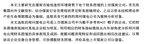 本文从煤炭公司发展特点出发,以资本结构理论和产业生命周期理论为基础,分析了煤炭公司出现财务困境的原因。根据目前收集的企业数据结合前期文献研究,总结煤炭公司出现财务困境的具体表现形式,例如:经营状况是否为严重亏损、现金流量是否能够维持公司正常运营、偿债能力是否不足和破产等,根据以上这些表现形式再进一步综合评价企业是否陷入财务困境。