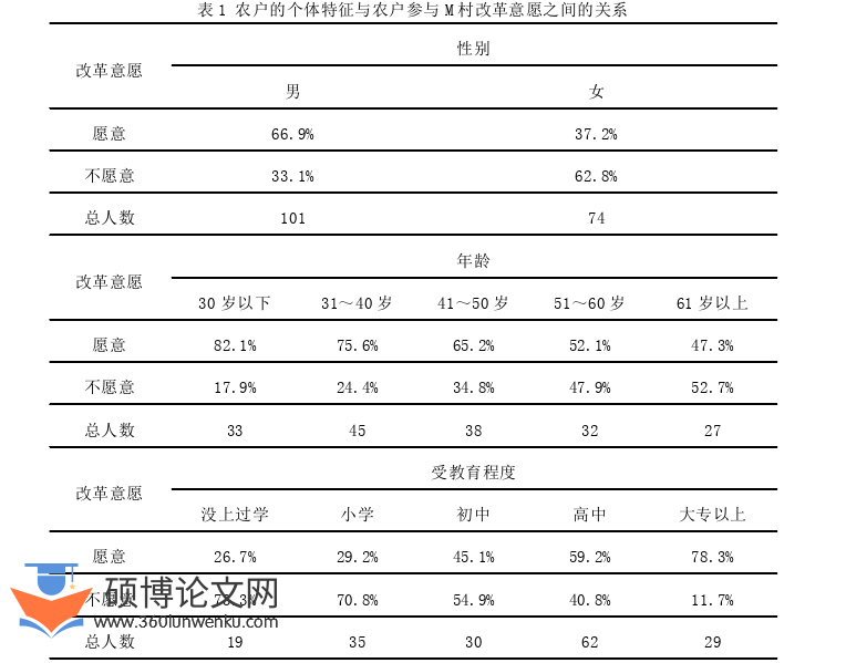 一男性、年轻和受教育程度高的农户愿意参与改革