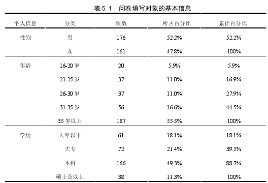 采用 SPSS 23.0 软件对正式调研阶段的问卷填写情况进行描述性统计,得到的结果分别如表 5.1、表 5.2所示: