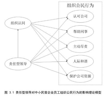 图 3.1 责任型领导对中小民营企业员工组织公民行为的影响理论模型