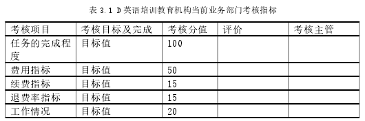表 3.1 D 英语培训教育机构当前业务部门考核指标