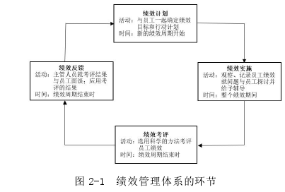 绩效管理体系各环节相互促进,紧密衔接,注重对公司绩效管理方式及存在问题、改进方向等方面进行的沟通,从而使双方能够摒弃理念上的差异,确定共同的关注点。通过实施绩效管理体系公司的管理者还能发现公司运营中出现的问题并及时加以改进,确保公司在发展过程中保持正确的前进方向,提高核心竞争力,各环节见图 2-1:
