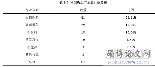 表 3.1 科创板上市企业行业分布