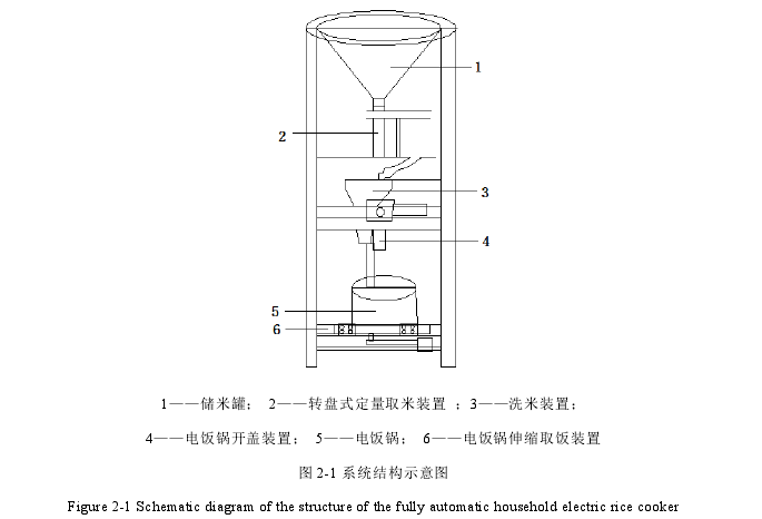 (1)详细分析了自动电饭煲各功能装置的设计要求,对自动电饭煲各项功能明确提出了硬性要求和性能指标。对自动电饭煲储存装置、量米装置、洗米装置以及推送装置的设计方案分别做了详细介绍,最后给出了系统整体结构的设计方案。