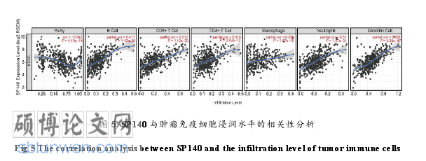 在本研究中,我们分析了 SP140 在不同肿瘤组织及相应癌旁组织中的表达差异以及对肿瘤患者预后的影响,发现 SP140 在 KIRC 和 KIRP 中明显高表达,并且高表达 SP140 的 KIRC 和 KIRP 患者均具有更低的总体生存率。由于 KIRC 是 RCC中最常见的病理类型,故选择 KIRC 作为后续研究对象。然后,我们分析了 SP140与已报导的 KIRC 预后生物标记物的相关性,发现 SP140 与 KIRC 预后生物标记物具有显著相关性。此外,基因功能富集分析显示,SP140 具有免疫调节功能。最后,我们分析了 SP140 与肿瘤免疫细胞浸润水平的相关性,发现 SP140 与免疫细胞及免疫细胞表面标记物具有显著相关性。以上结果表明,SP140 可能成为 KIRC 患者的一种新的预后标记物及潜在治疗靶点。