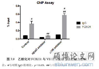 7. FoxO1 调控 VEGFA 表达的能力受到翻译后修饰—乙酰化的影响;乙酰化条件下,FoxO1 失去了调控 VEGFA 的能力;去乙酰化增强了 FoxO1 对 VEGFA的调控作用。