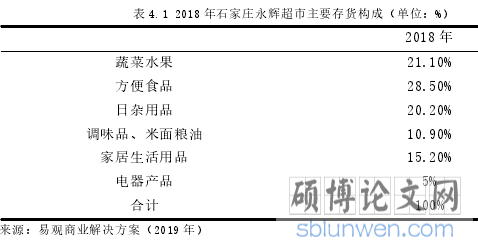 表 4.1 2018 年石家庄永辉超市主要存货构成(单位:%)