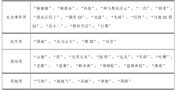 First, according to the origin, they can be divided into six categories: current political buzzwords, entertainment buzzwords, social events buzzwords, people’s livelihood buzzwords, borrowing buzzwords and the other categoriy.